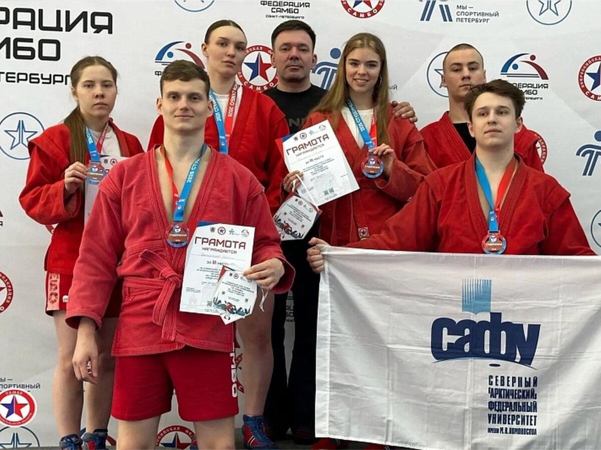 В Санкт-Петербурге прошёл зональный этап всероссийских соревнований по самбо, посвящённых памяти заслуженного тренера СССР Евгения Чумакова. Сборную Архангельской области представляли спортсмены из Северного (Арктического) федерального университета (САФУ) и Северного государственного медицинского университета. Они тренируются в региональном центре самбо «Ломоносов». В личном зачёте спортсмены Поморья смогли завоевать пять наград.Серебряные медали получили Екатерина Зеленцова из СГМУ в весовой категории 54 кг и Диана Онегина из САФУ в весовой категории 65 кг. Бронзовые награды взяли представители САФУ: Алиса Щетинина — в весовой категории 54 кг, Даниил Дранишников (88 кг) и Кирилл Аверьянов (98 кг). Все призёры зонального этапа соревнований получили право выступить на финальном этапе чемпионата России среди студентов. Финальные состязания пройдут 16–19 апреля в Москве. Отметим, что популяризация массового спорта и спорта высших достижений в регионе ведётся в рамках государственной прогр