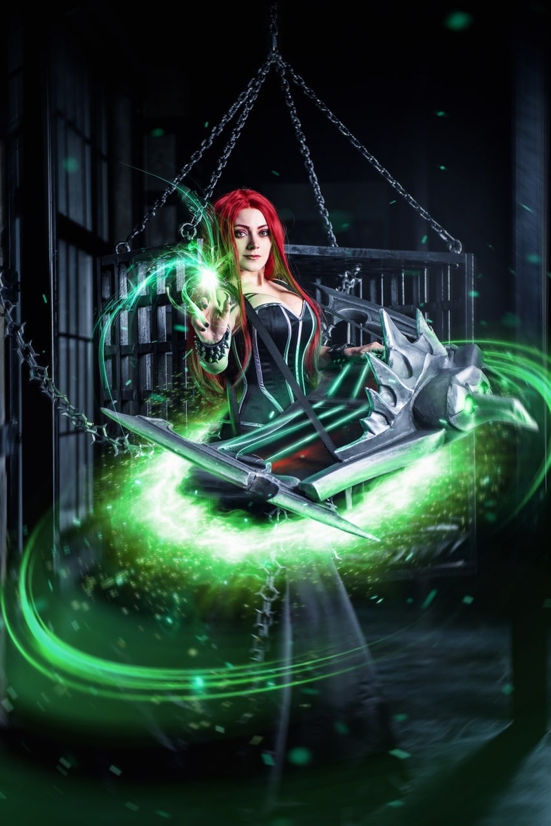 Образ Pentakill Sona из вселенной League of Legends в исполнении Алины Артемьевой получился мощным, мрачным и по-настоящему рок-н-ролльным, словно героиня только что сошла со сцены адского концерта. Яркие алые волосы, кожаный корсет и металлические элементы создают агрессивный и дерзкий стиль, идеально передающий атмосферу Pentakill, а массивный инструмент с цепями и неоновыми эффектами добавляет ощущение разрушительной магии. Темные локации, холодный свет и энергетические всплески превращают фотосет в зрелищную сцену, где Сона выглядит не просто музыкантом, а настоящим проводником силы и хаоса. Фэндом: League of Legends