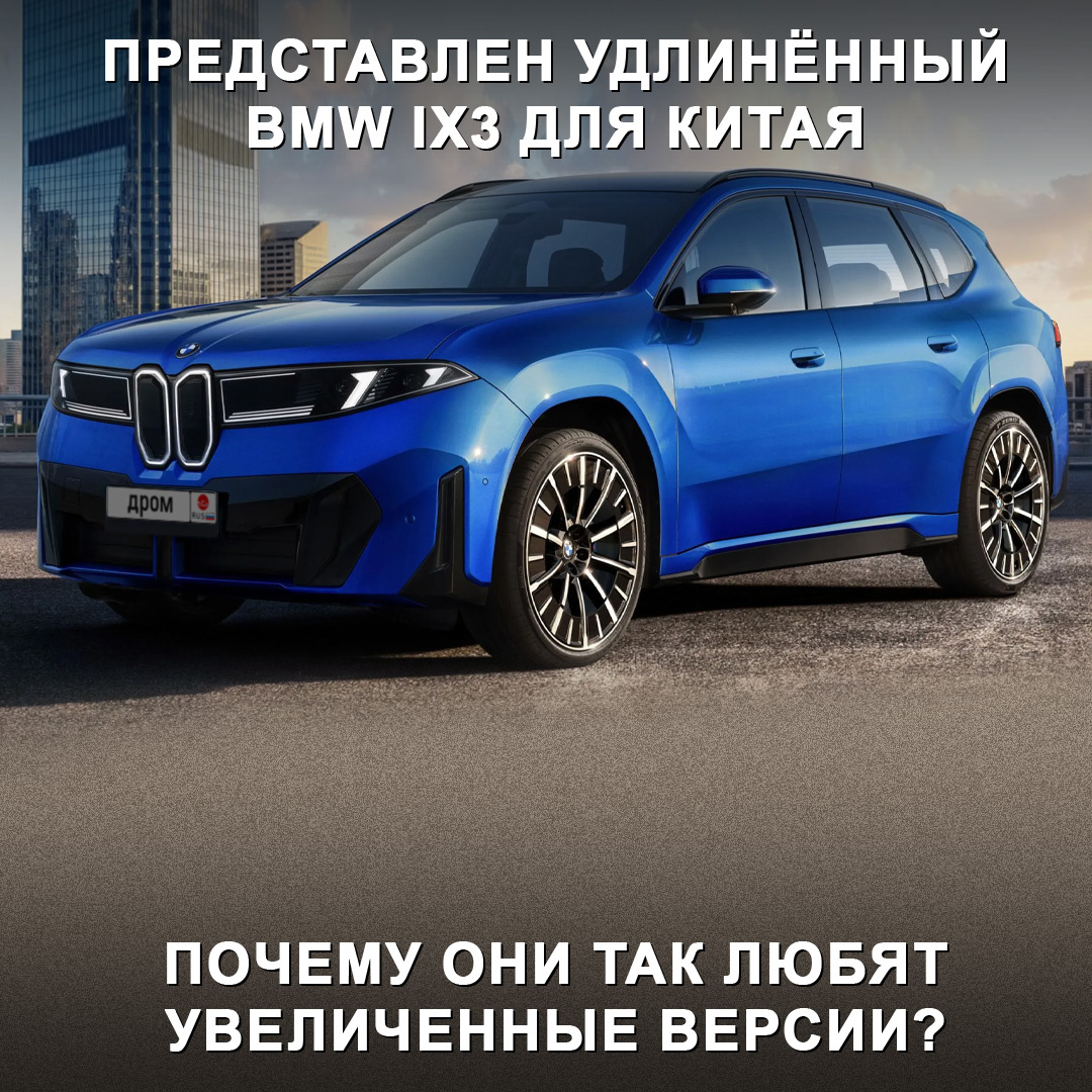 Он «разработан в Китае вместе с китайцами и именно для Китая» 😯 По дизайну автомобиль повторяет недавно представленную глобальную версию iX3 в стиле Neue Klasse. Но новинка получила увеличенную на 108 мм колёсную базу, которая достигает 3 005 мм. Общая длина кроссовера — 4 890 мм, то есть он больше, чем X5 поколения F15. И все дополнительные сантиметры пошли на пространство для ног пассажиров второго ряда. Силовая установка осталась без изменений — два электромотора на 469 л.с. (645 Нм), запас хода — 900 км. Но из-за новых законов КНР новинка лишилась выдвижных дверных ручек. Также удлинённый iX3 получил особые настройки шасси и ПО мультимедиа вместе с ИИ, разработанные в Китае. Цены пока не раскрыты. Как думаете, почему в Китае так любят удлинённые версии автомобилей? 🤔 #дромновость #китай #bmw #ix3 #удлинённый