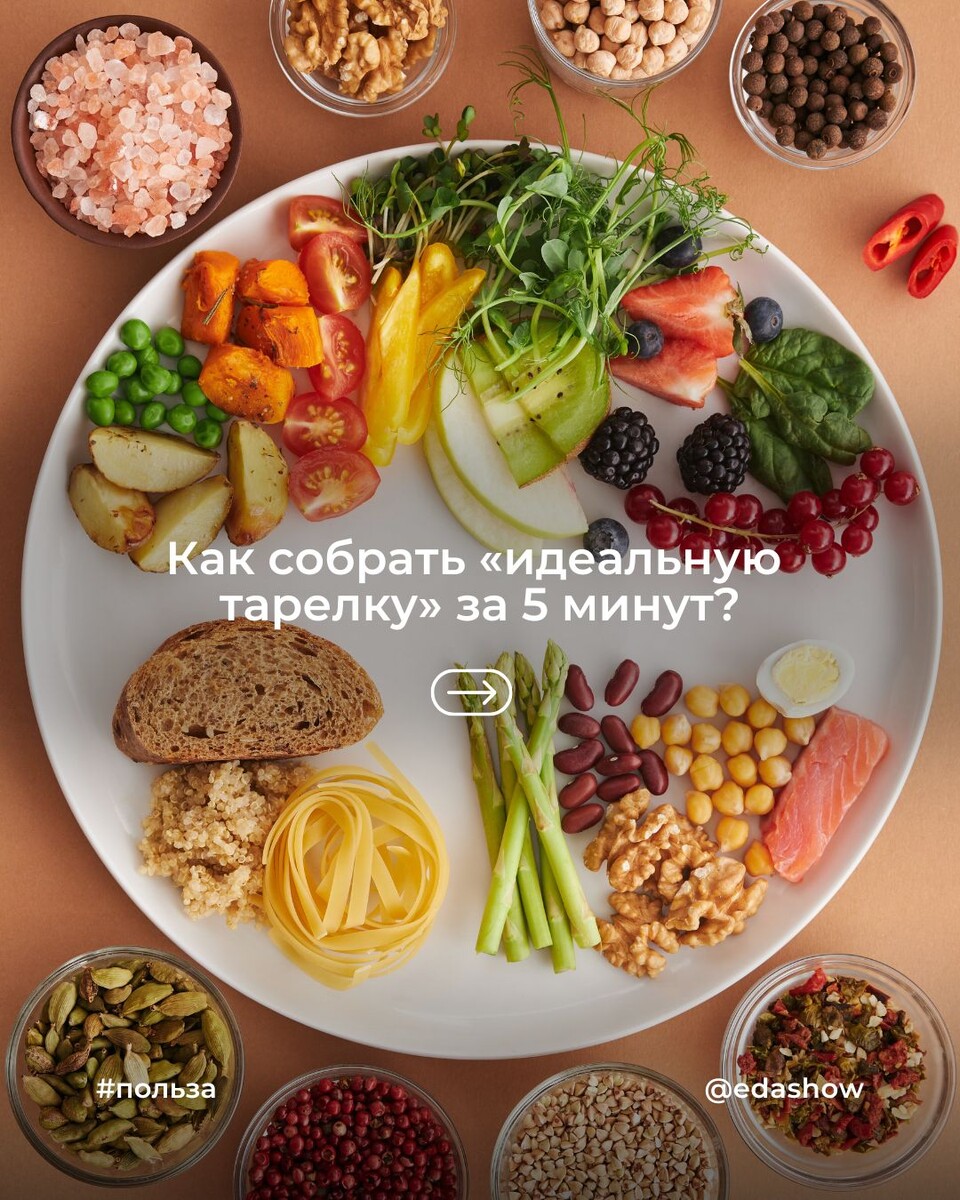 Иногда кажется, что «правильное питание» — это долго, сложно и требует постоянной дисциплины. Но на практике всё может быть гораздо проще: сбалансированную тарелку реально собрать за 5 минут — без сложных рецептов и строгих ограничений. С точки зрения науки, «идеальная тарелка» — это простой принцип баланса: ½ тарелки — овощи и зелень ¼ — белок ¼ — сложные углеводы + немного полезных жиров Такой подход помогает держать стабильный уровень энергии, контролировать аппетит и поддерживать здоровье без подсчёта калорий. Главное — не идеальность, а регулярность и разнообразие. На что обратить внимание: — Белок: даёт сытость и поддерживает мышцы (яйца, рыба, птица, бобовые); — Клетчатка: улучшает пищеварение и насыщает (овощи, зелень); — Углеводы: источник энергии (крупы, цельнозерновой хлеб); — Жиры: важны для гормонов и кожи (орехи, масла, авокадо). И да — всё это можно собрать буквально «из холодильника»! Вот 5 быстрых вариантов идеальной тарелки: Если совсем нет времени — даже комбинация и