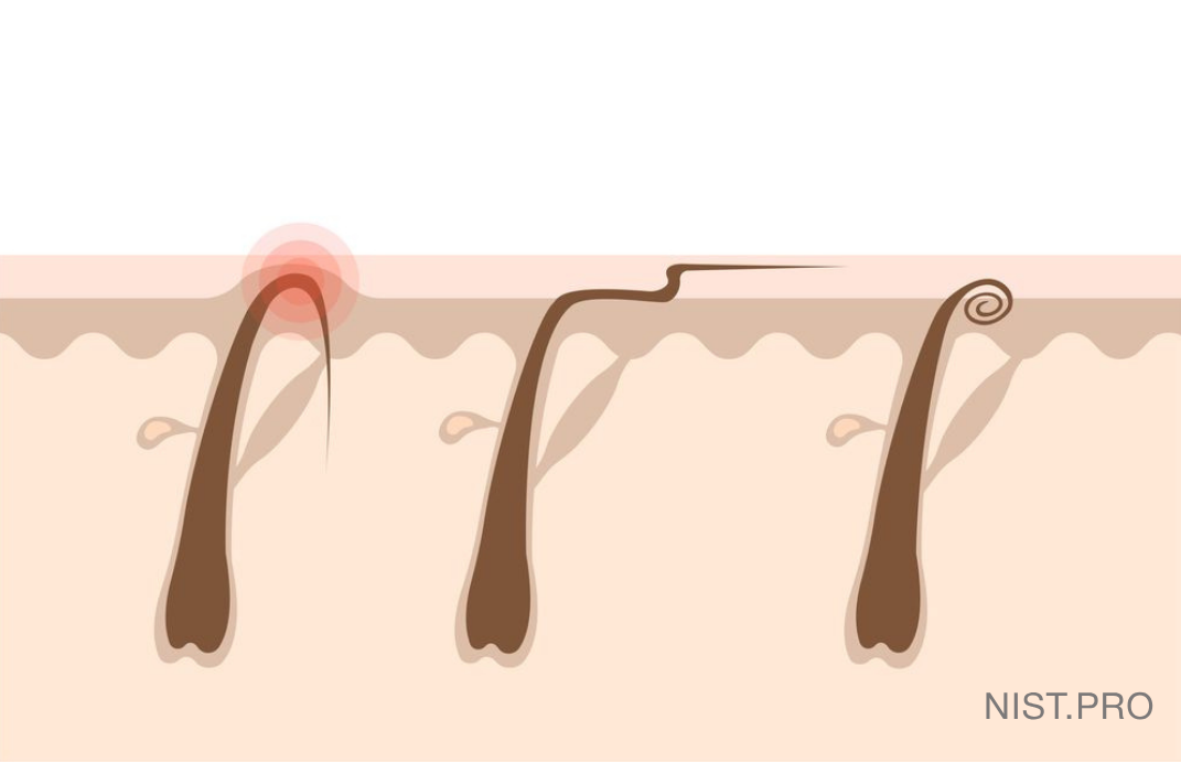 — плотная структура волоса В результате волос не может пробиться через кожу и начинает расти внутрь, вызывая воспаление. Скрабы и кислоты помогают частично освободить волос, но не влияют на саму причину — активность фолликула. Механическое удаление волос (бритьё, воск) усугубляет ситуацию:
