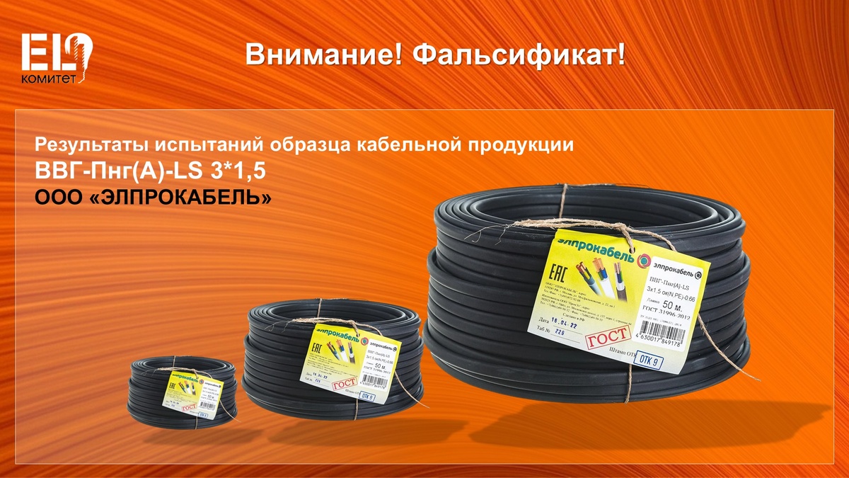 EL-Комитетом НОПСМ получены результаты испытаний образца кабельной продукции ВВГ-Пнг(А)-LS 3*1,5 производства, согласно маркировки, ООО «ЭЛПРОКАБЕЛЬ» (ИНН 7704871945), закупленного в магазине МАКСИДОМ (г. Казань, ул. Р. Зорге, д. 11А). ❌ Согласно протоколу испытаний, выданному ООО «НПО ПОЖЦЕНТР», в испытанном образце ТМ ЭЛПРОКАБЕЛЬ выявлены несоответствия требованиям п. 6.3.3 ГОСТ 31996-2012 по показателю «дымовыделение кабельных изделий с индексом «LS» при горении и тлении» (показатель светопроницаемости 64%). Отметим, что ООО «ЭЛПРОКАБЕЛЬ» является участником проекта «ЕСВК.Кабель», реализуемого ассоциацией «Честная позиция». В рамках данного проекта в 2025 г. аналогичная кабельная продукция ВВГ-Пнг(А)-LS 3*1,5 успешно проходила испытания, в т. ч. по показателям пожарной безопасности. ❌ В свою очередь, EL-Комитетом в 2025 г. также проводились независимые испытания образца кабеля BBГнг(A)-FRLS 3*2,5 ТМ ЭЛПРОКАБЕЛЬ по показателям пожарной безопасности, по результатам которых в нем выявл