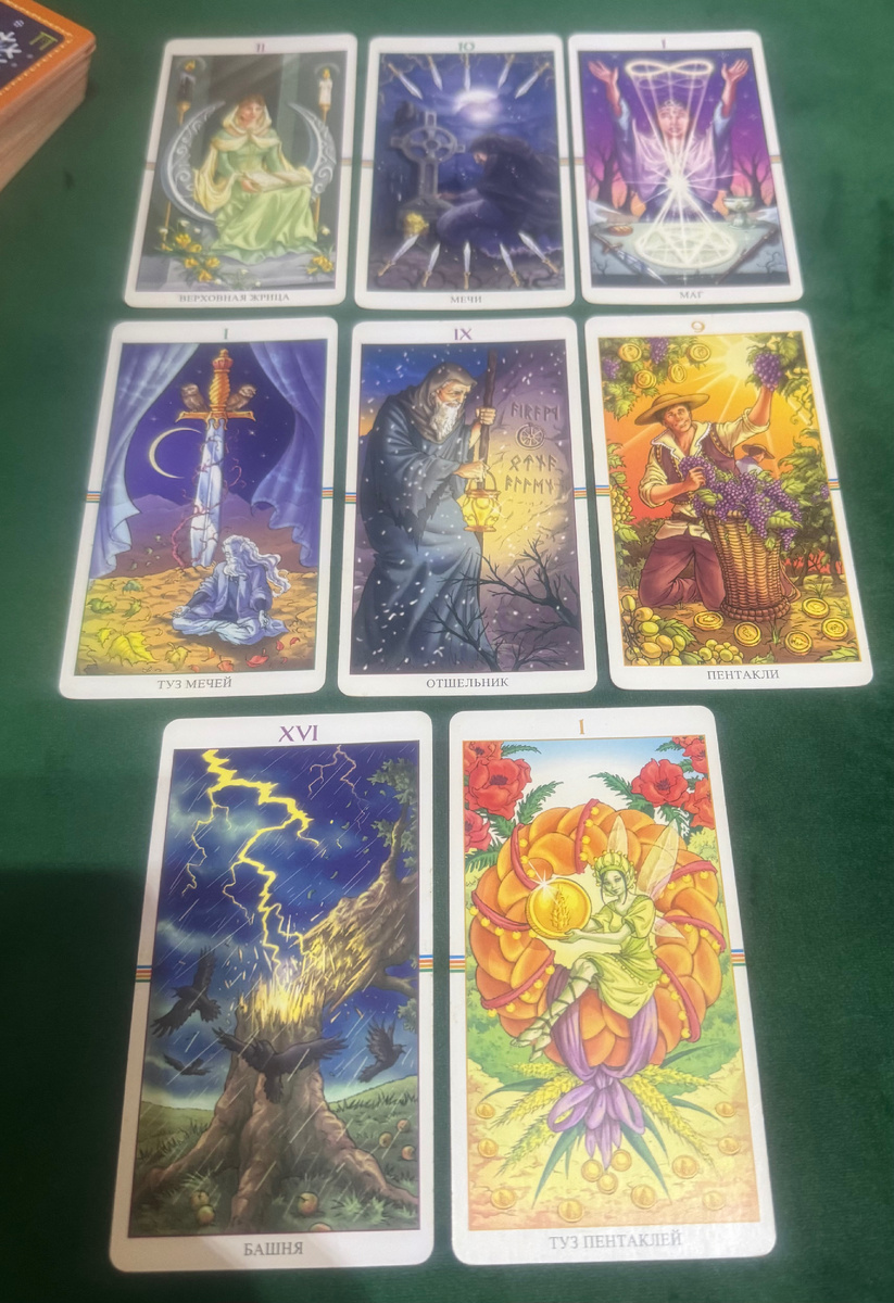 Я долго не раздумывала. Я достала свою колоду, ту, которая говорит только правду, и начала выкладывать карты. Руки слегка дрожали, потому что энергия шла плотная, тяжёлая. Высшие силы хотели, чтобы я передала это тебе немедленно.