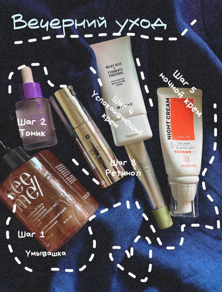 собрала свои топ средств, которыми пользуюсь на данный момент 🩷а пользуюсь я уже два месяца, еще до начала челленджа (помните его, да?) Шаг 1️⃣Умываюсь энзимным гелем, протираю полотенцем (просто промакиваю - прикладываю полотенце к лицу - не тру😀) Шаг 2️⃣Наношу на лицо тоник Шаг 3️⃣ Сыворотку ретинола и потом бустер на особо проблемные зоны - планирую до середины апреля, потом потихоньку перейду на кислоты Шаг 4️⃣ Успокаивающий крем Шаг 5️⃣ Ночной крем #уход_Джу