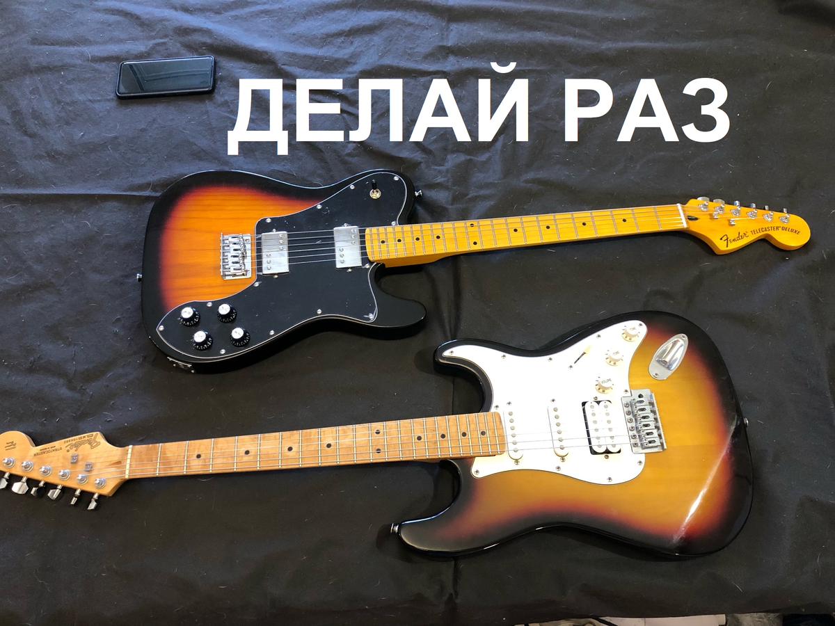 Сейчас у меня в работе две гитарые, обе китайские. Телек делюкс (им займусь попозже) и стратокастер "типа мекс", он уже сделан. У обеих гитар проблема - требуемая настройка мензуры лежит за пределами хода сёдел. Просто у телека в одну сторону, у страта - в другую. Страт интересный, это реплика 10-летней давности, она сделала еще с такими декалями и такими колками, которые сейчас почти не встречаются. Гриф относительно хорошо себя чувствует. Он не идеален, он дал некоторую кривизну, но что-то удалось компенсировать за счёт шлифовки ладов, так что комфортную высоту струн выставить вышло. Лопухнулся я в другом. Я СПЕРВА сделал лады и порожек, сменил струны, а уже ПОТОМ попытался настроить мензуру и очень удивился. Потому что сёдла уже были выставлены максимально назад, а надо было еще. С другой стороны, если при поступлении на ней стояли совсем дурные китайские струны, или хорошие, но совсем ушатанные, то на них ловить мензуру тоже было бы глупо, так что и ладно. На фото видно, что сдвин