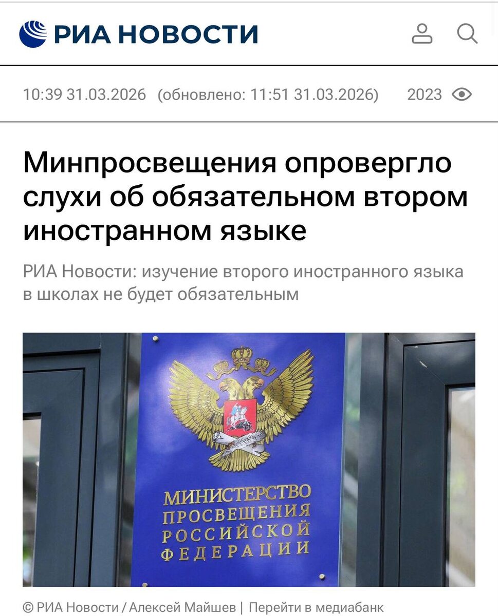 Минпросвещения уже опровергло планы по введению обязательного второго иностранного языка с 1 сентября 2027 года