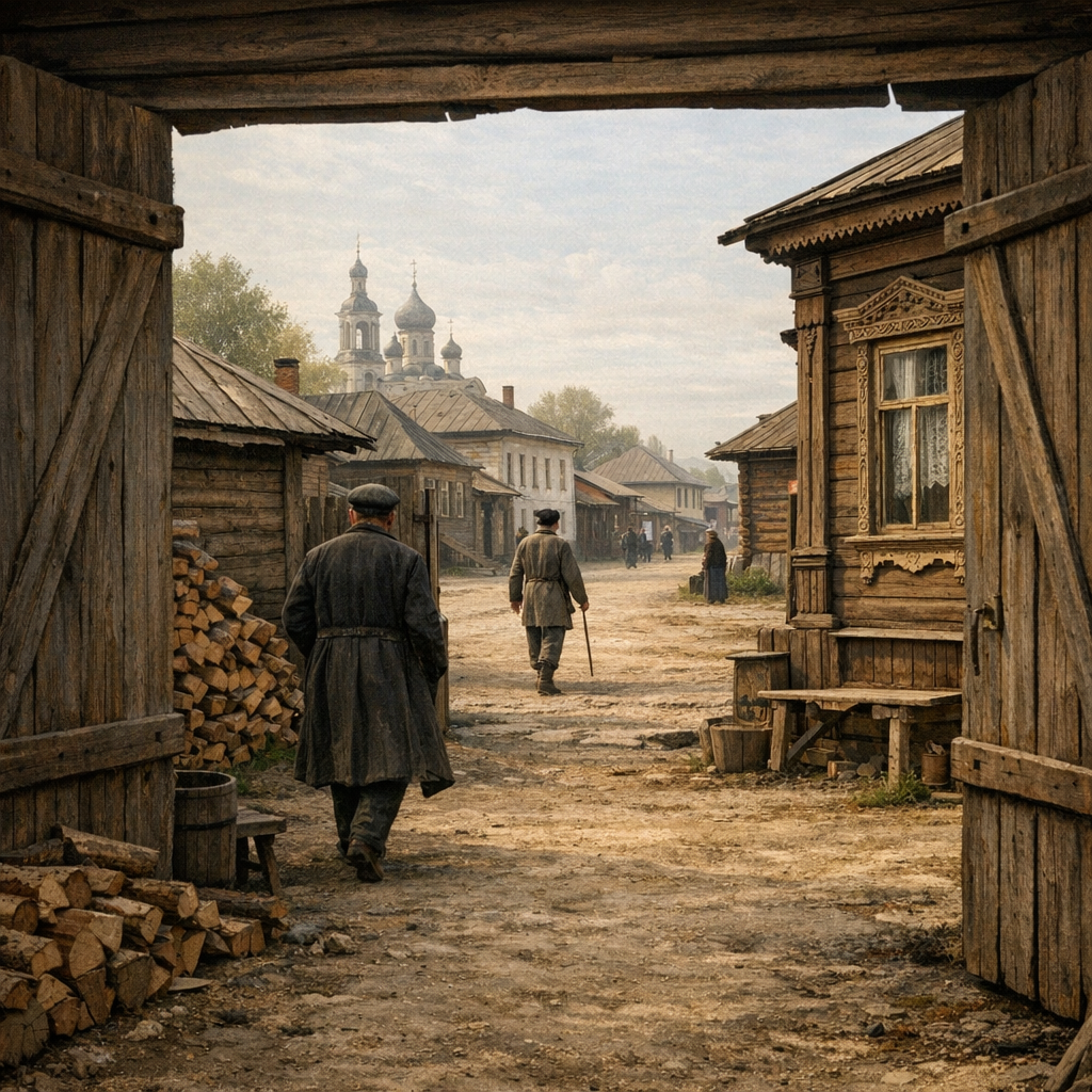В Карачеве XIX века город не ощущается сразу целиком, он раскрывается постепенно, как будто слоями, которые не видны с первого взгляда. Здесь нет резкой границы между улицей и пространством, между домами и воздухом, всё мягко перетекает одно в другое. Первое ощущение — это спокойствие, но не пустое, а наполненное, как будто в нём есть что-то большее, чем просто тишина. И чем дольше находишься здесь, тем сильнее это ощущение становится, превращаясь в состояние, из которого не хочется выходить. Улицы Карачева не выглядят строгими или выверенными, они идут естественно, иногда слегка изгибаясь, обходя дома и дворы, как будто повторяя рельеф или старую логику застройки. Грунтовые дороги утоптаны, но не перегружены, в них нет ощущения постоянного движения, скорее — редкого, но регулярного. Пространство не давит и не направляет, оно просто существует, позволяя идти без ощущения цели. Идёшь по такой улице — и кажется, что она не ведёт, а остаётся вместе с тобой. Застройка Карачева мягче, чем