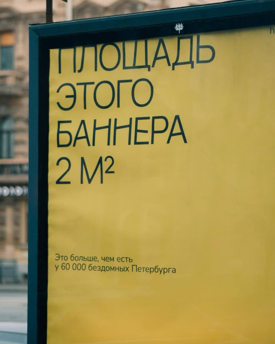 Благотворительная организация «Ночлежка» запустила рекламную кампанию, где каждый щит, плакат или стенд показывал одну простую мысль: любая