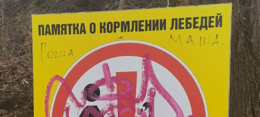 В прошлом году неравнодушные балаковцы установили информационные стенды о том, чем можно кормить водоплавающих птиц (лебедей, уток) на озере Линёво. Дело в том, что местную живность горожане кормили хлебом, батоном и прочими «невкусностями», которые птицам нельзя есть. После этого пришла идея установить таблички, и воплотили её волонтёры. Но эти таблички периодически страдали от рук вандалов — несколько раз их восстанавливали. -Вандалы продолжают уродовать всё, что им попадётся под руку. В этот раз на территории озера Линёво они снова нарисовали на табличке-памятке свои каракули. Ну вот почему бы не себе на лбу? Чтоб все знали, кто автор, и уважали за такой «талант», — говорит балаковец Дмитрий Иванов, который и инициировал установку стендов на берегу озера. Отметим, что эта территория попала в список мест, где будет проведен первый этап благоустройства по программе «Комфортная среда». Но много работ уже проведено здесь неравнодушными горожанами: высажены сосны, установлены таблички, о