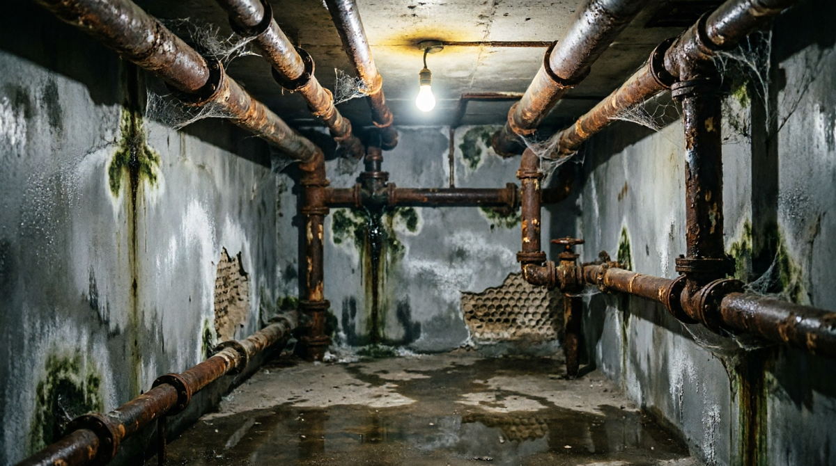 На следующий день я спустился в подвал. Старый фонд, трубы проложены еще при строительстве. Сырость, запах плесени.