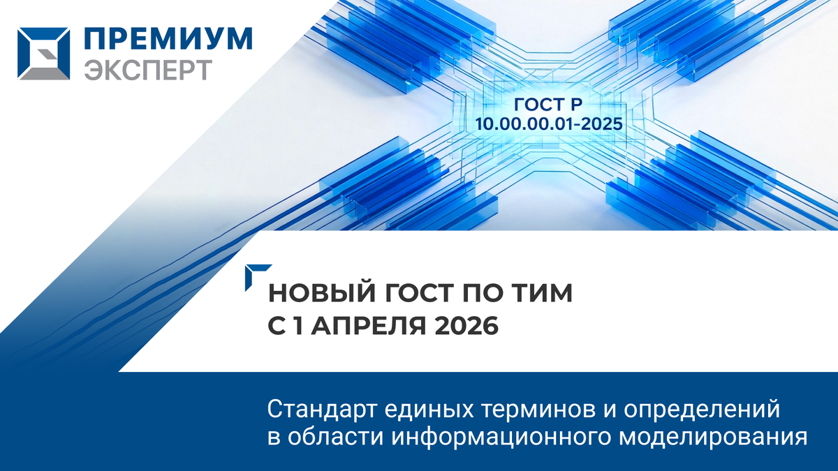 С 1 апреля 2026 года вступает в силу ГОСТ Р 10.00.00.01-2025 — стандарт, который вводит единые термины и определения в области информационного моделирования. На первый взгляд документ не самый «громкий». Никаких новых требований к проектам, никаких обязательных форматов, никаких штрафов. Но если смотреть глубже — это один из самых важных шагов в развитии ТИМ в России за последние годы. Ситуация на рынке сейчас выглядит примерно так: Но при этом каждый участник процесса понимает это по-своему. Проектировщик, заказчик и эксперт могут использовать одни и те же слова — «информационная модель», «среда данных», «коллизии» — но вкладывать в них разный смысл. Отсюда возникают: Новый ГОСТ как раз закрывает эту проблему. Он не вводит новые правила, а делает так, чтобы все говорили на одном языке. Стандарт закрепляет 69 ключевых терминов в области ТИМ. Но важно не количество, а содержание. Теперь официально определены: Это база, на которую дальше будут опираться: 1. Технические задания; 2. Догово