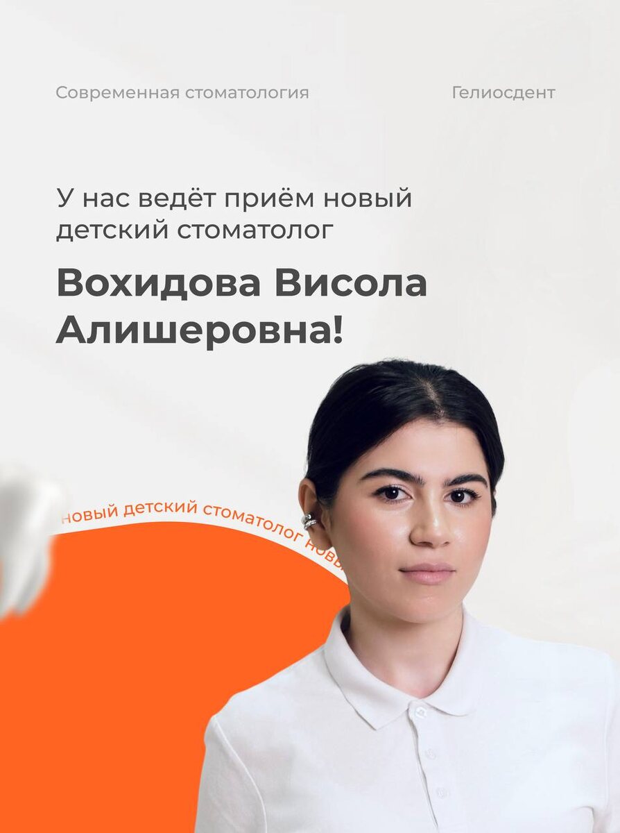 ! Вохидова Висола Алишеровна проводит комплекс процедур для своих юных пациентов Для ваших деток она проведёт следующие процедуры: ▫️профессиональная гигиена полости рта ▫️герметизация фиссур ▫️лечение кариеса временных и постоянных зубов ▫️лечение осложнений кариеса временных зубов ▫️удаление временных зубов Не забывайте о главном: даже если вашего ребёнка ничего не беспокоит, мы всё равно рекомендуем своевременно посещать стоматолога. Ведь предупреждать любые заболевания проще и выгоднее, чем их лечить. Запланируйте встречу с доктором 🤍 Гелиосдент — стоматология, которой доверяют. 📍 ул. Кузнецова, 3 📍 ул. Победы, 7 📞 +7 (343) 317-33-32