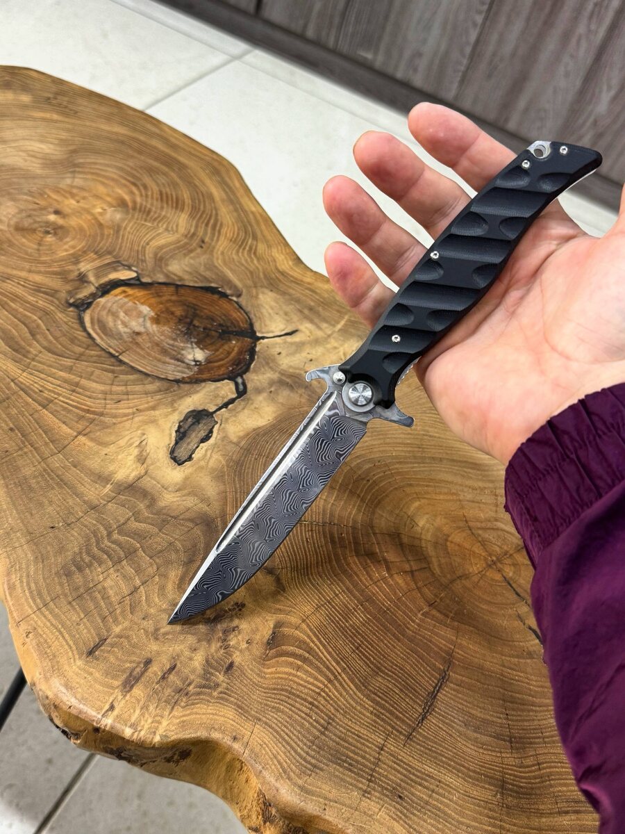 Клинок - Дамасская сталь Плашки - G10 Подшипниковый механизм Имеется клипса Отверстие по темляк Общая длина 24см Клинок 12см ⚪️цена 7.500₽ ЗАКАЗАТЬ В ТЕЛЕГРАММЕ ЗАКАЗАТЬ В ВАТСАПЕ ОТПРАВКА И ОТЗЫВЫ ⚪️+79280609590