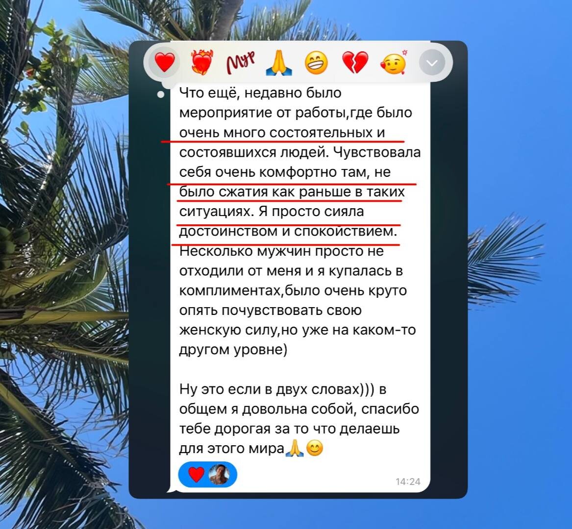 Быть удобной это самый быстрый способ возненавидеть своих близких и набрать лишний вес Тут на островах часто говорим о лишнем весе, потере смысла, непонимании куда двигаться дальше, раздражении, не смотря на рай вокруг и на каждое такое обсуждение у меня находится 2-3 похожих решенных запросов. Знаете, какой момент в работе с клиентами я люблю больше всего? Тот, когда внутри меня включается предчувствие «Сейчас начнётся магия». Вот свежий пример. Пришла ко мне Лена, с нормальной жизнью мечты с удалёнкой, путешествиями, отношениями. Но при этом злость на весь мир, раздражение на близких и привычка быть удобной. Она ненавидела себя за долгие муки выбора, за лишние сантиметры тела, а весы в ванной были главным судьёй. Перманентно раздражалась на мужа, на его дочь, на носки, разбросанные по дому, на себя за каждую ошибку. Я смотрела на неё и чувствовала, как эта злость, спрессованная годами удобства и угодливости, заполняет пространство. При этом за всем этим я видела огромный алмаз