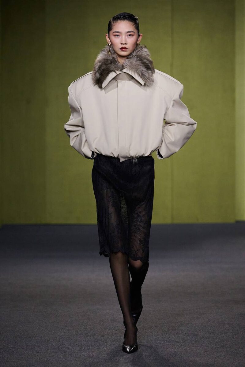 Коллекция — про женщину, которой хочется стать, но которую невозможно описать одним образом. Дизайнер Yirantian Guo собирает многослойный характер через одежду — сложную, противоречивую, как и сама современная женщина. Три архетипа: — Бизнесвумен: строгий тейлоринг, кожа и шерсть, четкие линии и контроль — Современная домохозяйка: внешняя сила + внутренняя мягкость, объем, фактуры, контраст форм — Фриланс: независимость, свобода, осознанный выбор своего пути Через игру жесткого и мягкого, структуры и текучести Guo показывает не роль, а состояние — женщину, которая сама себя собирает. Очень точное попадание в ДНК новой независимой аудитории Китая: self-made, self-aware, self-defined.