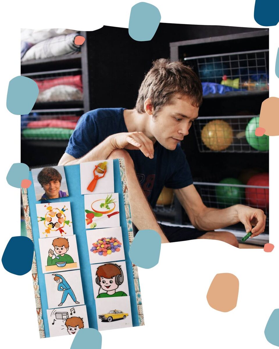 Артём посещает Центр дневной занятости «Перспектив» для молодых людей. Как для любого человека с аутизмом, для него очень важен определённый порядок вещей, последовательность и предсказуемость действий. В речи Артёма присутствуют отдельные слова, но их запас ограничен, поэтому полноценная коммуникация затруднена. И тут на помощь приходят карточки, из которых составляется предметное расписание — один из инструментов альтернативной дополнительной коммуникации (АДК). Артём иногда подходит к этому расписанию и выбирает карточки в соответствии со временем дня и предстоящим событием, а иногда делает это, чтобы получить желаемое — например, долгожданное печенье 😊 Карточки работают и в обратном направлении: педагоги могут напомнить молодому человеку, что предстоит делать. И всё это значительно облегчает взаимопонимание. * Проект «Мастерская ассистивных технологий», благодаря которому несколько наших специалистов прошли обучение основам АДК на курсе Центра развития и социализации детей и