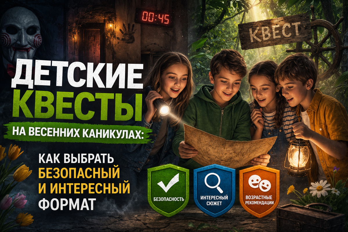 Весенние каникулы — отличное время, чтобы подарить детям новые впечатления и активный отдых. Детские квесты сегодня являются одним из самых популярных вариантов досуга. Это увлекательные приключения с загадками, командной работой и интересными сюжетами. Однако при выборе важно учитывать не только развлекательную сторону, но и безопасность. У каждого квеста установлено разное возрастное ограничение, которое зависит от многих факторов, например, сюжета или сложности загадок. Но прежде всего это сделано в целях безопасности. Хороший детский квест всегда адаптирован под возраст участников, чтобы юные игроки могли справиться со всеми заданиями самостоятельно. На «Мире Квестов» доступны подборки квестов для разных возрастов, чтобы вам было легко определиться с выбором: 1. Квесты для детей 6-9 лет; 2. Квесты для детей 10-12 лет; 3. Квесты для подростков (13-16 лет). Для детских команд на игре может потребоваться присутствие взрослого или аниматора. Он будет помогать и направлять игроков, а та