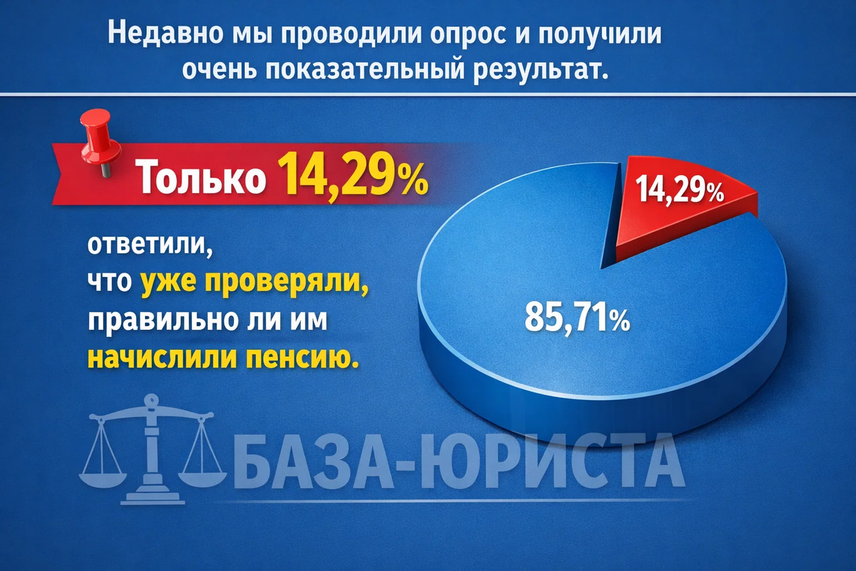 Недавно мы решили задать нашим подписчикам очень простой вопрос: Проверяли ли вы когда-нибудь, правильно ли вам начислили пенсию? Казалось бы, вопрос простой. Но результаты оказались очень показательными. Только 14,29% ответили, что уже проверяли свою пенсию. А вот остальные ответы говорят о гораздо большем: 45,24% признались, что никогда не проверяли, правильно ли им начислили пенсию. Ещё 40,48% ответили, что хотели бы проверить, но не знают как. Если посмотреть на эти цифры внимательно, становится ясно одно: