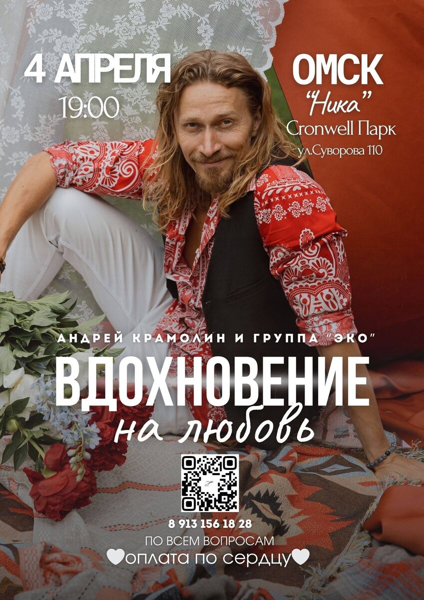 Концерт с исполнением любимых песен и стихов о любви и жизни, премьерой новых песен и клипа. Уникальный артист, исполняющий свои произведения, предлагает оплату по сердцу. Начало: 04 апреля 2026 19:00 Стоимость: Бесплатно, Донат Адрес: г Омск, Суворова, 110 Организатор: https://vk.com/public227881889 Дорогие, приходите на Сольный концерт Андрея Крамолина https://vk.ru/andrei_kramolin Музыкальная группа Эко vk.ru/eko_music 4 апреля в 19:00 Ника, Суворова, 110 Исполняются все самые тёплые полюбившиеся многим песни и стихи о любви, о жизни, о глубоких, душевных проживаниях ❤️ Так же состоится премьера новых песен и нового клипа «Эко - Мой огонь»🔥🎬 Зовите всех, будем радоваться жизни, танцевать, петь, вдохновляться на Любовь!🙌🌞✨ Уникальный артист,... #развлечения_современная_музыка Узнать подробности, адрес или записаться на событие.