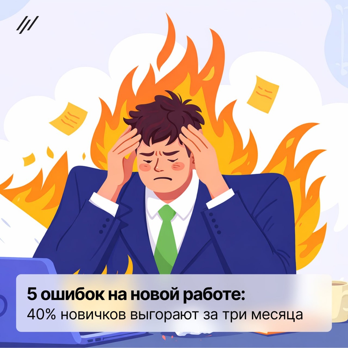 Помните это состояние? Вы в первый день на работе, сидите за своим местом, но оно еще не ваше. Монитор горит, открыты документы, трекер и чат с командой, но внутри — вакуум. Вы не «работаете», вы «проходите адаптацию», чувствуя себя шпионом на вражеской территории🤔 В это время важно не совершать ошибки, которые медленно, но верно отдаляют вас от цели — стать своим в команде. 🔅Это классика для молодых специалистов в 2026 - 42% новичков выгорает за первые 3 месяца, а 28% из них увольняются на испытательном сроке. ✅Но выход есть — просто избегайте 5 ошибок новичков на новой работе 1. Молчать и не задавать вопросы По данным hh ru за 2026 год, 35% ошибок на старте — от "самостоятельного" погружения в проект. Спрашивайте смело: это покажет интерес, а не слабость. Ошибаться - нормально. Тот кто молчит оказывается в информационном пузыре и не погружается в реальность проекта, что приводит к проблемам в дальнейшем. 2. Брать на себя задачи не по силам, геройствовать Настоящее уважение при