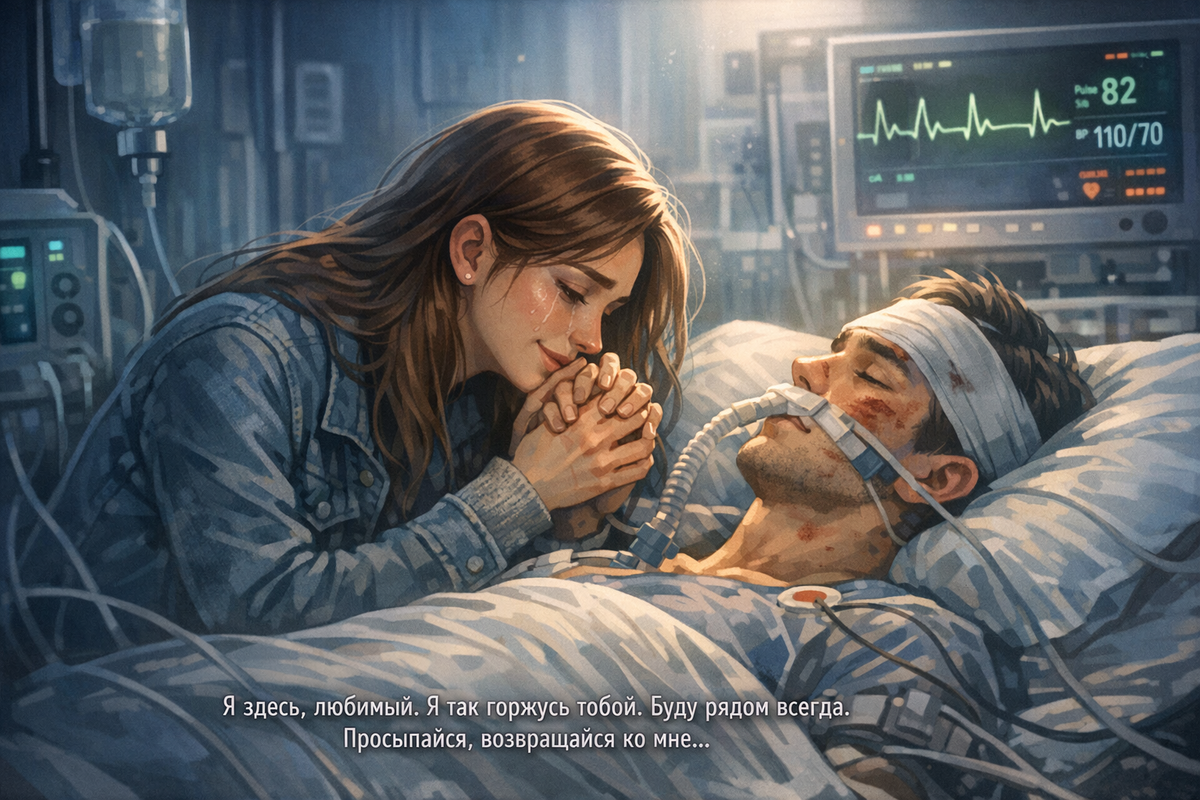 — Привет, — шепнула она. — Это я, Катя. Ты вернулся. Ты справился. Я горжусь тобой. Я здесь. Буду рядом всегда. Пока не очнёшься, пока не встанешь, пока не пойдёшь со мной гулять. Обещаю. Я не уйду. Потому что ты моя судьба, а судьбу не бросают.