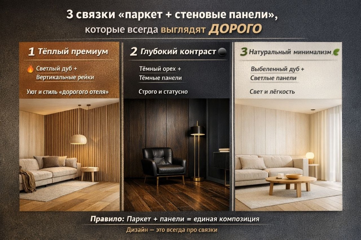 ✨ 3 беспроигрышные связки «паркет + стеновые панели», которые почти всегда выглядят дорого