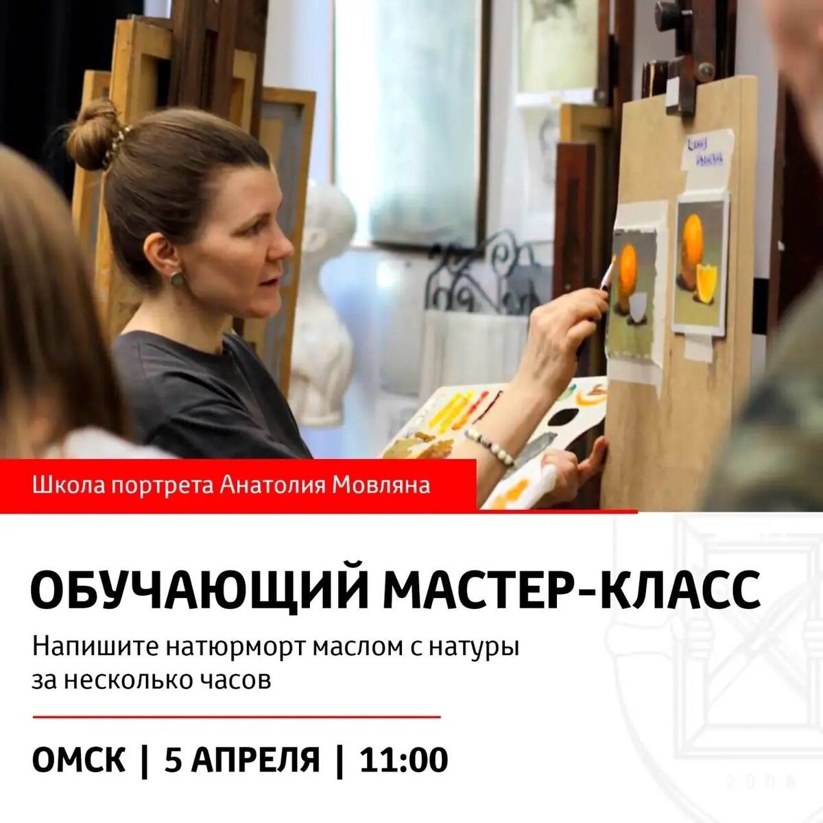 Приглашаем на мастер-класс по живописи маслом. Под руководством опытного преподавателя вы напишете натюрморт, познакомитесь с материалами и основами работы с масляной живописью. Отличная возможность попробовать себя в творческой атмосфере художествен Начало: 05 апреля 2026 11:00 Стоимость: Бесплатно Адрес: г Омск, пр-кт Карла Маркса, д 18/11 Организатор: https://vk.com/public154465595 🎨Приглашаем вас посетить Мастер-класс по живописи, который состоится 5 апреля в Омске. Это отличная возможность попробовать себя в работе с маслом под руководством опытного преподавателя, а так же провести время в творческой атмосфере в стенах художественной школы. За несколько часов вы напишете натюрморт, познакомитесь с материалами, красками и основами работы с масляной живописью,... #творческое_развитие_рисование Узнать подробности, адрес или записаться на событие.