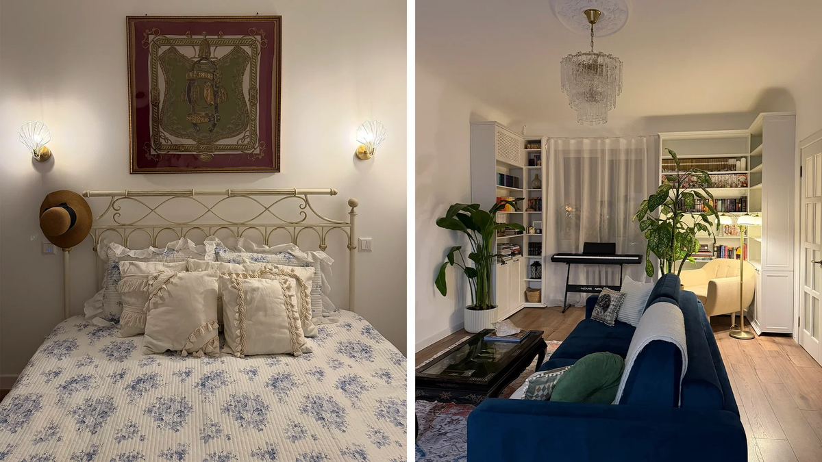 Меня зовут Катя, мне 27 лет, четырнадцать из которых я подбираю в секонд-хендах одежду для себя и других людей. Для меня этот формат давно не про экономию, а про поиск изделий с историей, характером и именем. Это отношение к вещам с прошлым отразилось и в выборе квартиры: я с самого начала даже не рассматривала новостройки. Знаю, что у них достаточно плюсов, но и минусов хватает. К тому же в 19 лет я пожила в Санкт-Петербурге, много видела там старого фонда и окончательно влюбилась в высокие потолки, гипсовую лепнину и ощущение пространства.