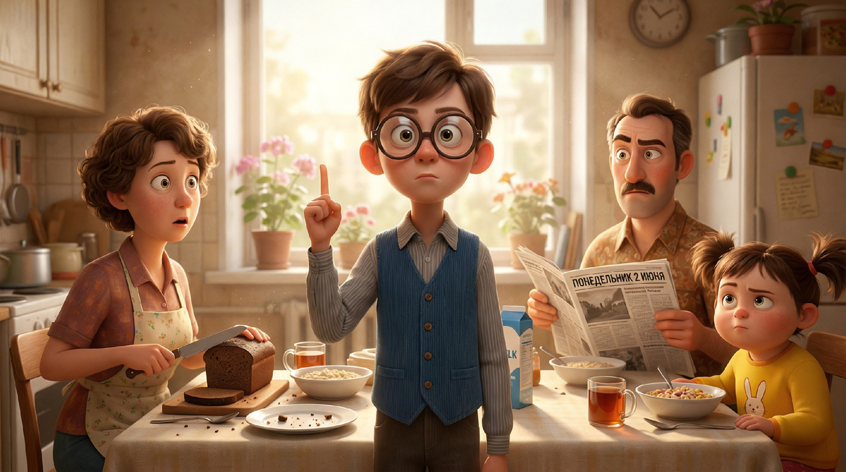 Папа поднял бровь. Мама перестала резать хлеб. Младшая сестра Тося, семи лет, посмотрела на него и спросила: