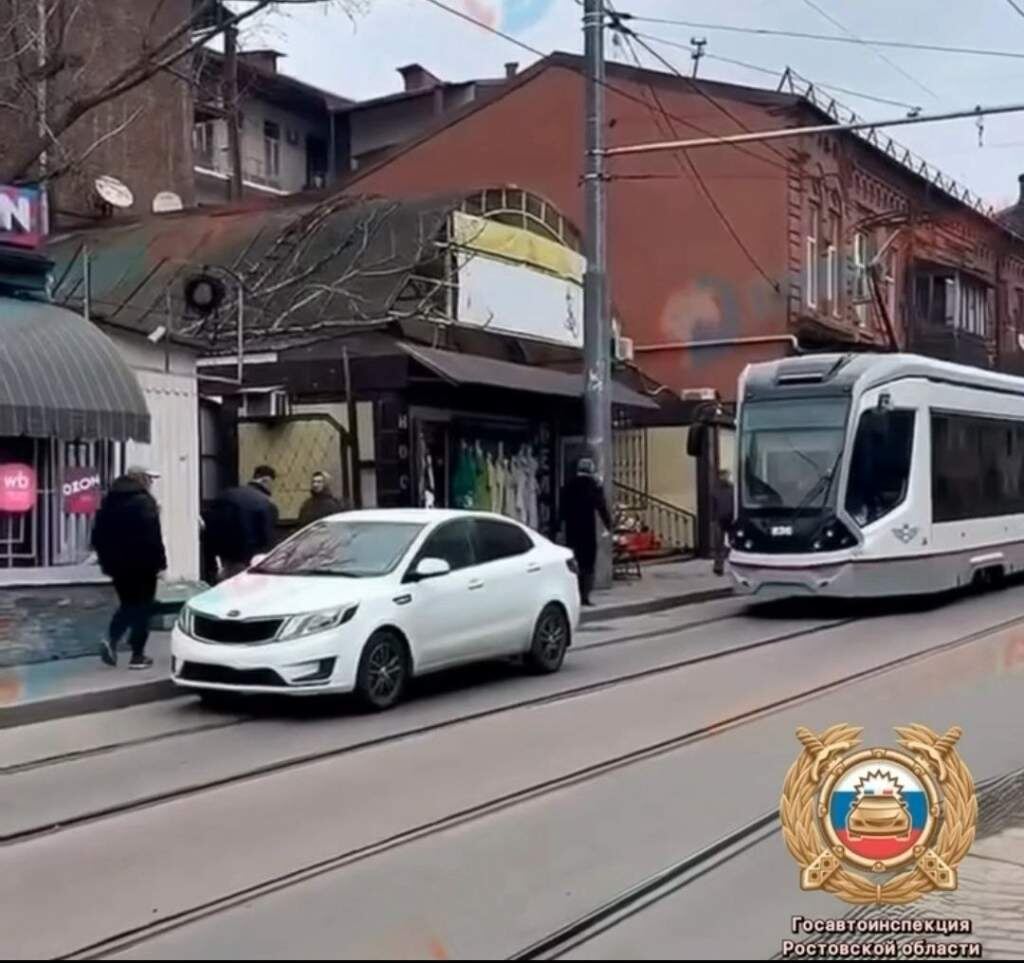 В Ростове автомобилист припарковался на трамвайных путях, перекрыв движение общественному транспорту