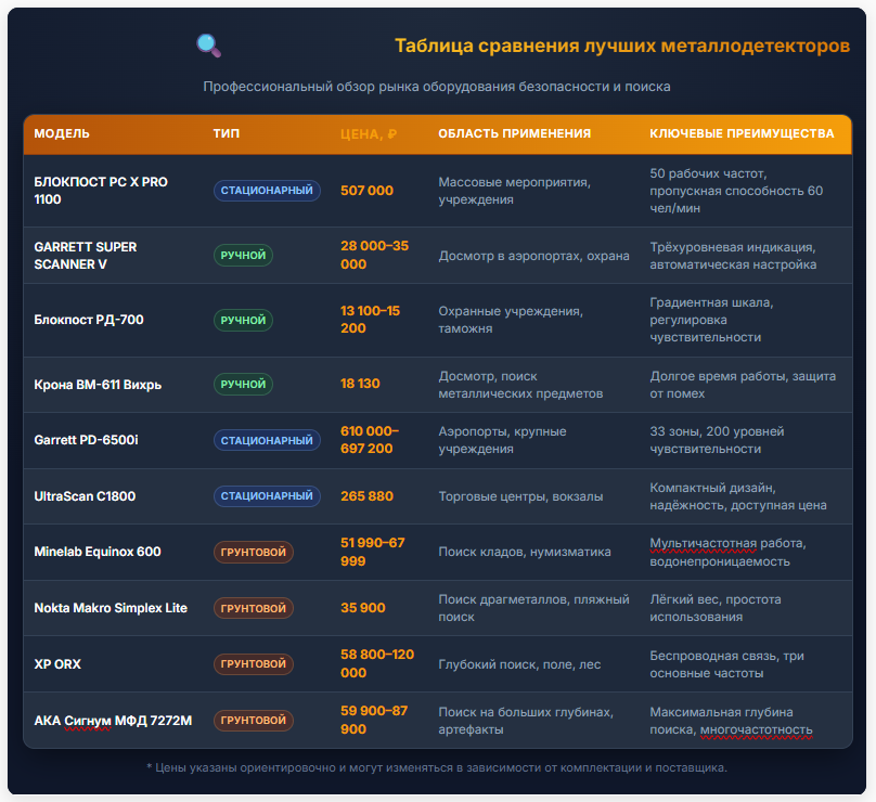 В современном мире безопасность и эффективный поиск являются приоритетами для многих организаций и частных лиц. Независимо от того, нужен ли вам надежный инструмент для досмотра на входе, портативное устройство для проверки посещений или универсальное решение для поиска в полевых условиях, правильный выбор металлодетектора может существенно повлиять на результаты работы. В этой статье мы рассмотрим десять лучших моделей, помогая вам разобраться, какой металлодетектор купить в первую очередь в зависимости от ваших конкретных потребностей и бюджета.
