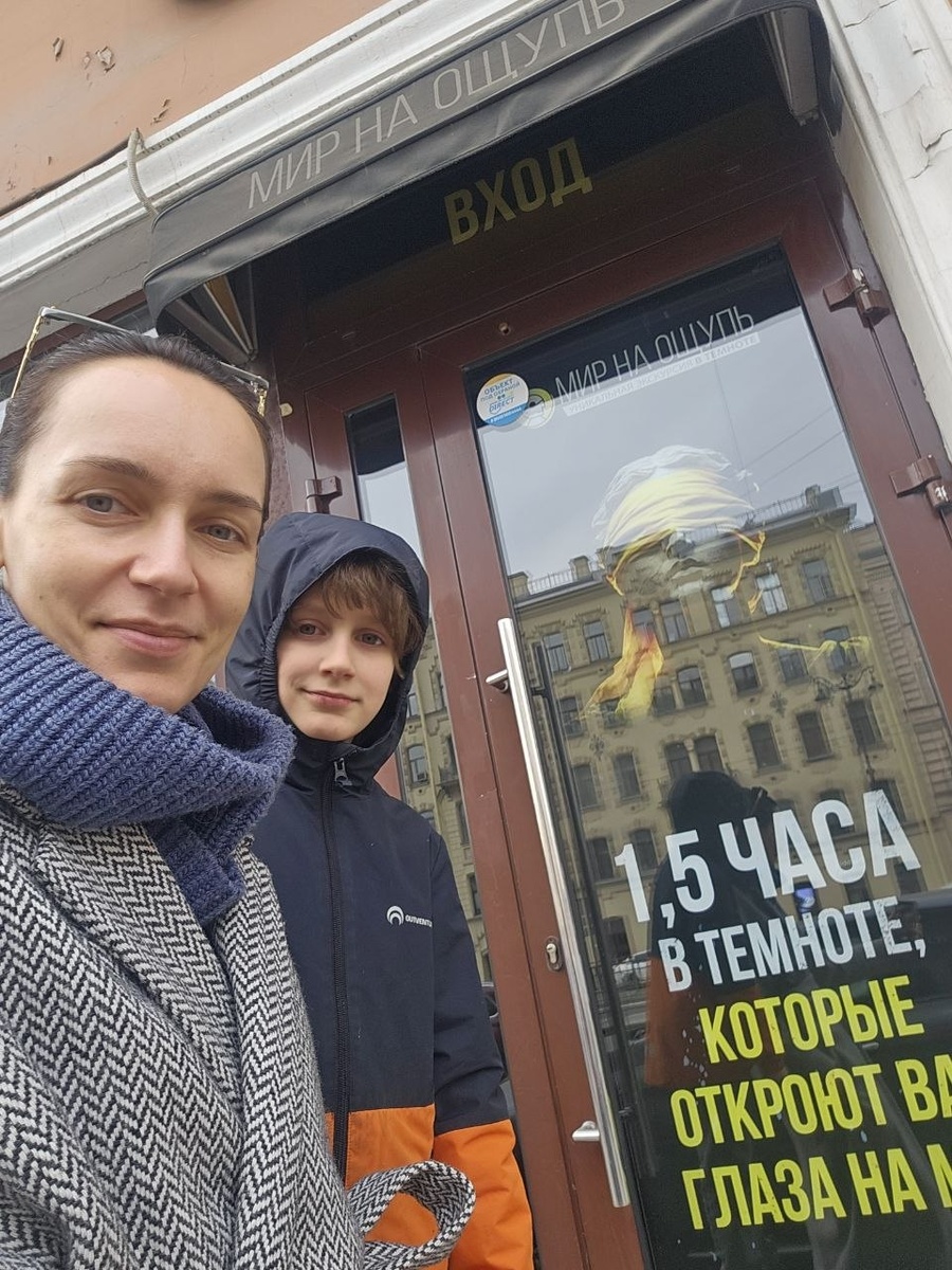 Вот и с Никифором распаковали его каникулы Сходили сегодня с ним в Мир на ощупь. Это такое пространство, где в полной темноте с проводником (незрячим человеком) исследуются различные пространства: * жилая комната; * улица, обустроенная в помещении; * продуктовый магазин; * небольшой музей с картинами и макетами самых известных достопримечательностей со всего мира; * кафе, где можно заказать и попробовать какие-нибудь простые продукты, типа снеков, мороженого или соков. Основная ценность таких походов, в том, что понимаешь: есть вещи, (например такие как зрение), важность которых не осознаешь, пока вдруг в какой-то момент их не лишишься. И хорошо, что это можно сделать в такой безопасной обстановке. Испытать себя на полтора часа превратившись в человека, который абсолютно ничего не видит — ни с открытыми, ни с закрытыми глазами. А есть только звуки, только тактильные ощущения, интуиция, если хотите, и то, как ты себя будешь чувствовать и вести в этой обстановке. И ещё это возможнос