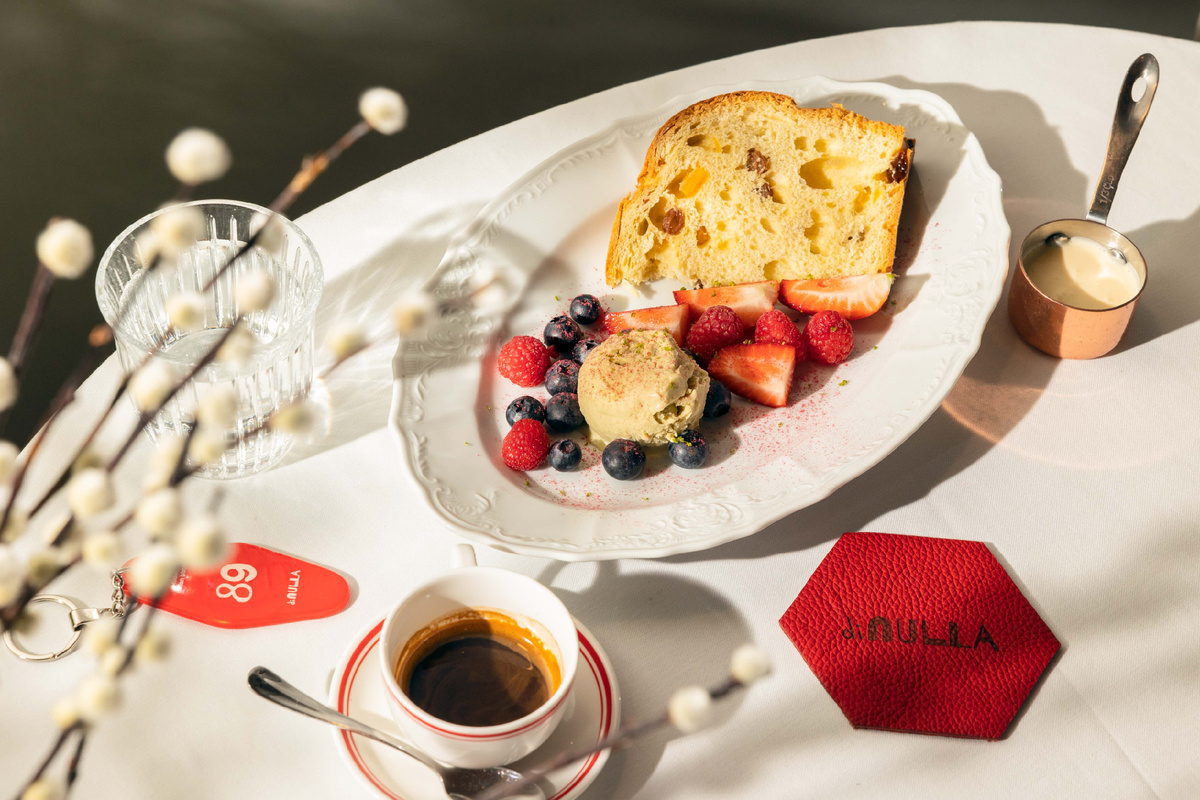 12 апреля сестры разделят эту радость со всеми посетителями Di Nulla. В этот пасхальный день в ресторане будут предложены два варианта приготовления настоящего итальянского панеттоне. Один — в составе пасхального завтрака, где нежная, пышная выпечка гармонично сочетается с яйцами, красной икрой, авокадо, мортаделлой и сыром грюйер. Второй — в десертной вариации, где панеттоне подается с освежающим фисташковым джелато, свежими ягодами и классическим соусом англез.