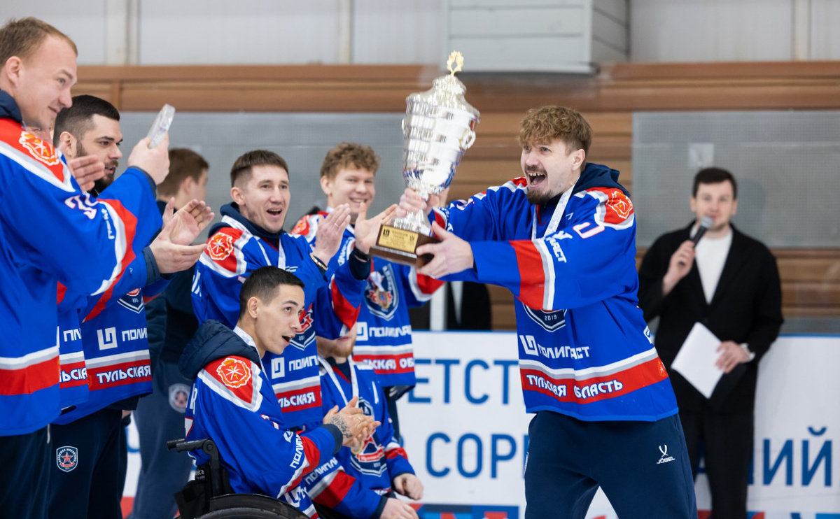 Подготовили для вас фотографии с яркой церемонии! Сегодня, 31 марта, в городе Алексин на базе РУТБ «Ока» состоялась церемония награждения победителей чемпионата России по хоккею-следж 2025-2026 «Высшая лига». Мероприятие прошло при поддержке Правительства Тульской области и при участии официального партнера Федерации — Группы Компаний «Полипласт», которая выступила генеральным спонсором чемпионата. В финальном этапе чемпионата приняли участие 8 лучших команд России. За титул чемпиона в решающих матчах боролись тульский «АКМ-следж» и «Югра». Победителем всероссийских соревнований стала команда «АКМ-следж». Тульский коллектив одержал три победы подряд над принципиальным соперником из Ханты-Мансийска в рамках чемпионата и завоевал титул двукратного чемпиона России. Победа «АКМ-следж» стала, без сомнения, грандиозным достижением для системы «Академия хоккея им. Б. П. Михайлова» и Тульской области в целом. Бронзовые медали чемпионата достались команде «Звезда» из Санкт-Петербурга. Помощник