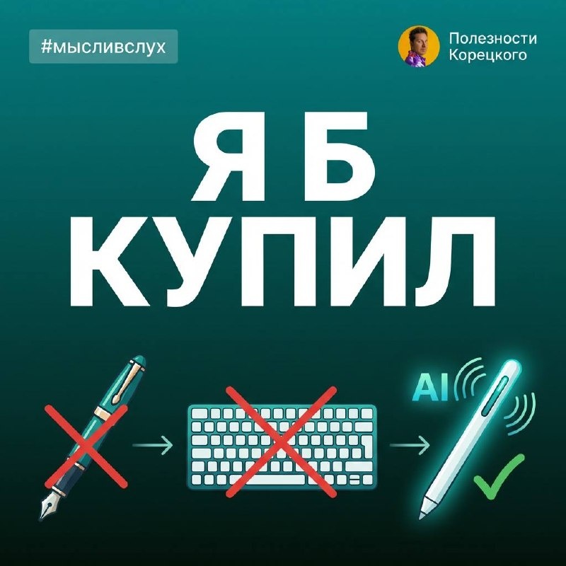 Ручку беру в руки очень редко, только чтобы ставить подписи. Теперь в моей жизни появился Speakly — я уже не печатаю — ни на телефоне, не на компьютере. Вот было бы какое-то устройство типа умной ручки, которое бы меня слышало/видело, понимало и превращало бы мои мысли в заметки. Джони Айв (создатель дизайна айфон) как-будто услышал меня и делает такое устройство.🖱 Я бы точно купил, чтобы не забывать: как это — писать от руки! 🔄🔄🔄 ⚡ — если б тоже купил (а) 💩 — ерунда #мысливслух Спасибо🔴Чат🔴Особняк🔴Автор