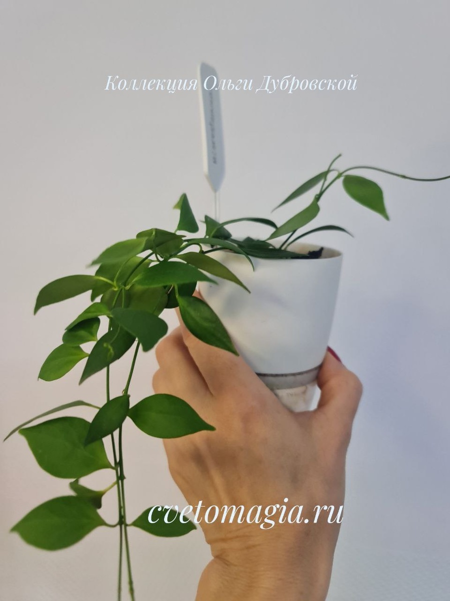 Исправляюсь - Hoya microstemma (хойя микростемма), беленькие цветочки с красными коронками "глазками". Нежные листочки с прожилками. Не крупная, хойя. Жду, не дождусь когда она прическу свою нарастит.
