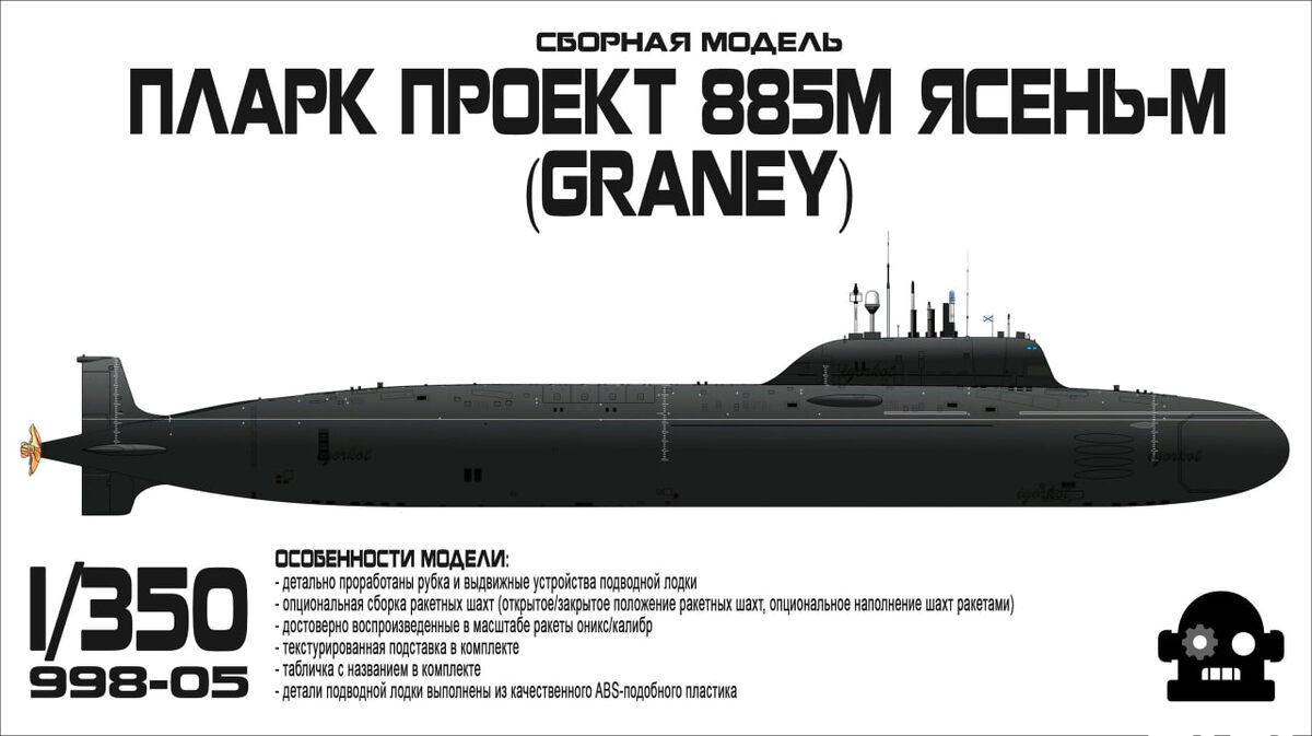 Мастерская МХ выпустили в продажу модель атомной подводной лодки проекта 885М Ясень-М (Graney) в 1/350 масштабе.