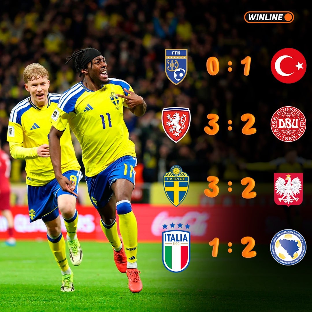 👉 Дьёкереш за уши вытянул Швецию на ЧМ, турки на тоненького обыграли Косово. Италия снова вылетела в стыках, а чехи впервые с 2006 года едут на мундиаль!