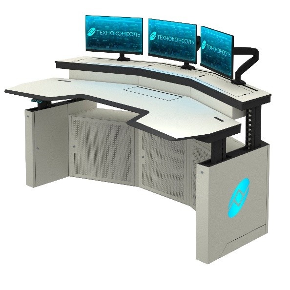 Регулировка высоты диспетчерского пульта позволяет реализовать этот принцип. При необходимости оператор может поднять столешницу и продолжить работу стоя, не меняя расположения мониторов и органов управления.