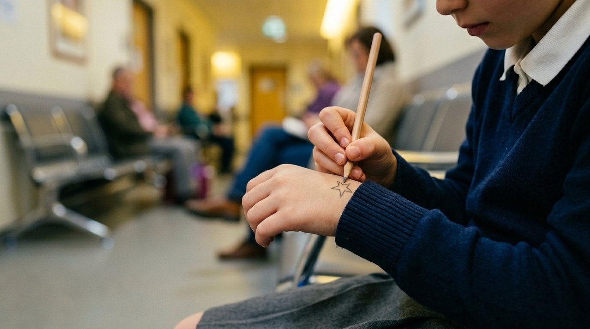 Жёлтый свет ламп, пять человек в очереди, стул с подлокотником, к которому прилипала ладонь. Пахло хлоркой и чем-то мятным – из кабинета за стеной. Полина сидела тихо, карандаш в руке, рисовала на руке. Всегда рисовала. Если не было бумаги – на салфетке, на полях тетради, на билете из автобуса. Врач посмотрела горло, послушала лёгкие, выписала направление на сдачу анализов.