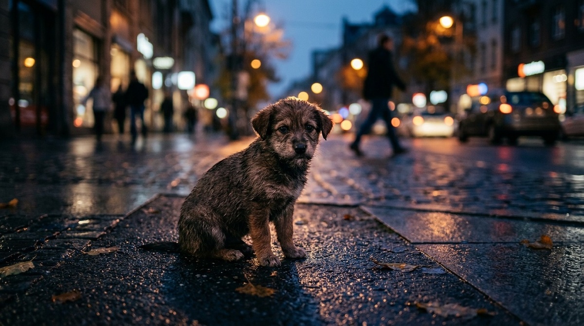 Помню только асфальт – твёрдый и холодный под лапами, – чужие ноги вокруг, голоса, запах выхлопа и чего-то жареного из какого-то окна. Я бежал, не разбирая дороги, пока не забился в щель между двумя мусорными баками. Там затаился. Лежал, не двигаясь, пока звуки снаружи не стали тише.