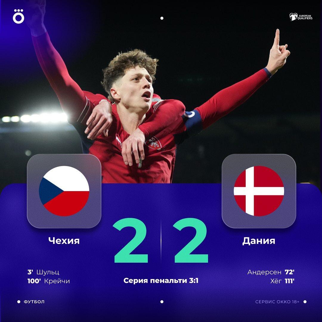 Впервые спустя 20 лет. Второй матч подряд чехи выиграли в серии пенальти. Прошли сложнейшие стыковые игры против Ирландии и Дании. Сказка 💫