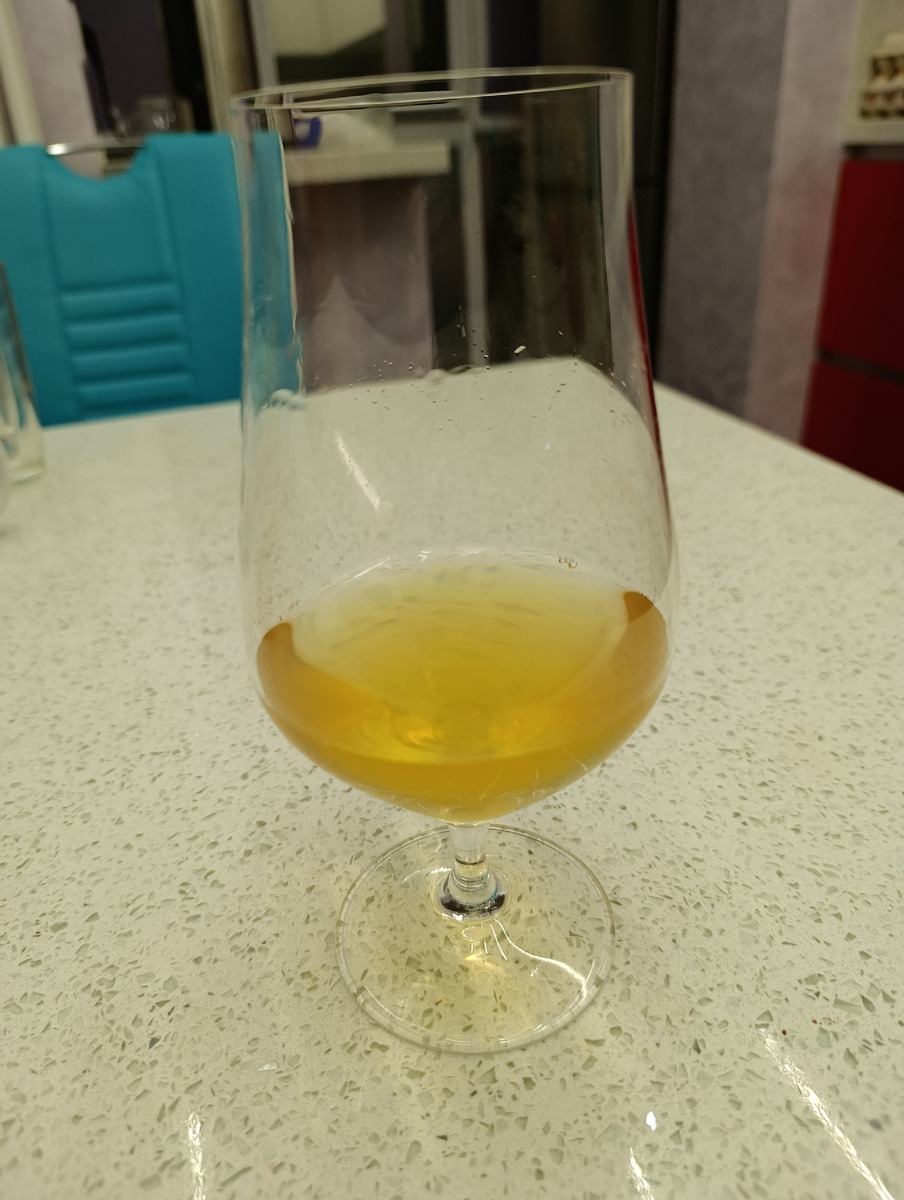 Вкус начинается с лёгкой кислотности, затем сразу ее перебивает терпкость и умеренная танинность, присущая яблочной косточке. Терпкость нарастает резко и после нескольких секунд постепенно угасает. Достаточно простой и грубый вкус для ценителей таннинности в напитках.