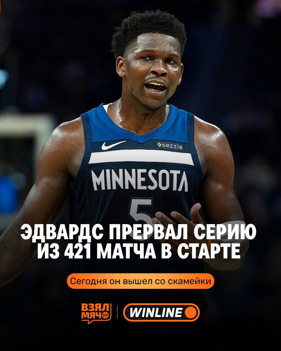 Лидер «Миннесоты» впервые за долгое время вышел не в старте — его серия из 421 матча подряд прервалась. Причина максимально неожиданная: перед игрой ему просто срочно понадобилось в туалет. Это подтвердили и тренер Крис Финч, и сам игрок. В итоге Эдвардс набрал 17 очков и отдал 4 передачи, а команда одержала победу со счётом 124:94. Самая неожиданная причина пропуска старта, которую вы видели? 🤔👇 🏀 ПОДПИШИСЬ — ЗДЕСЬ ЖИВЁТ БАСКЕТБОЛ!