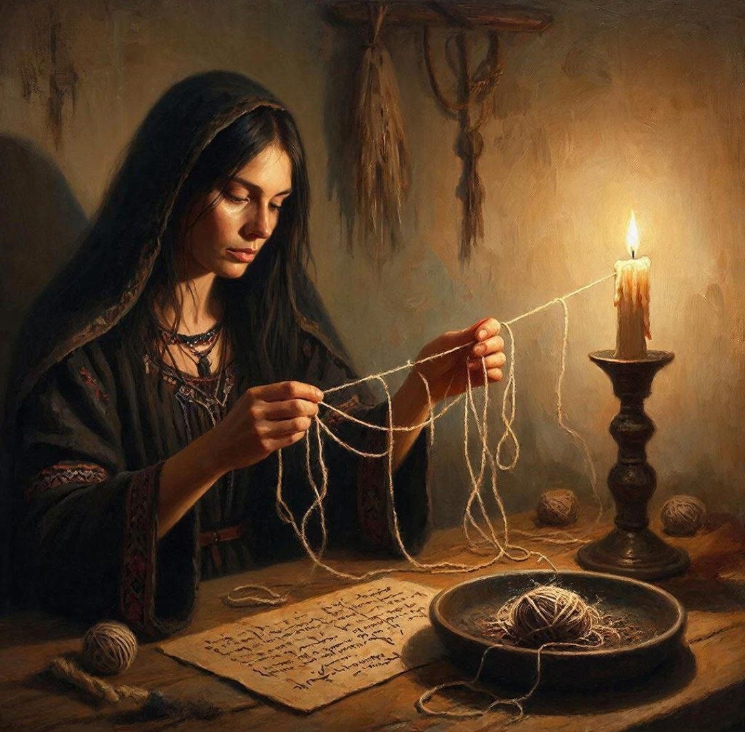 Этот обряд предназначен для того, чтобы помочь человеку распознать неискренность или заставить другого признаться во лжи. Он основан на символике связывания и сжигания, что в магических традициях часто ассоциируется с раскрытием истины и очищением. Необходимые материалы - Натуральная светлая нитка (10–15 см). - Тонкая свеча (из любого материала). - Подсвечник. - Лист с заговором. - Огнеупорная посуда для пепла. Пошаговая инструкция 1. Подготовка - Установите свечу в подсвечник и зажгите её спичками. 2. Создание узелка - Возьмите нитку и, завязывая на ней узелки, произнесите: «Как эта нитка связывается, так я тебе (имя «подозреваемого») запрещаю врать мне». - Чем больше узелков, тем сильнее считается действие ритуала. 3. Сжигание - Положите нитку с узелками в огнеупорную посуду. - Сожгите её, держа за один конец пинцетом, представляя лицо человека, которого хотите проверить. 4. Завершение - Когда нитка сгорит, соберите пепел и положите его на лист с заговором. - Дождитесь, пока св