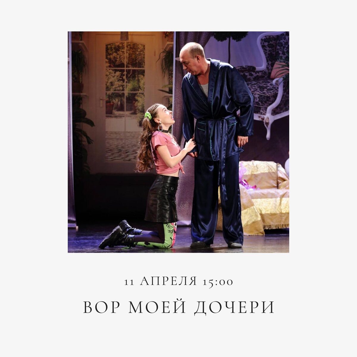 Странное ограбление, грабитель — будущий зять, дочь влюблена, горничная увольняется. Герой пытается сохранить рассудок в этом сумасшедшем доме. Начало: 11 апреля 2026 15:00 Стоимость: От 400.0 руб. до 1200.0 руб. Адрес: г Омск, Ленина, 45 Организатор: https://vk.com/public130131089 Безумный водоворот событий: странное ограбление, грабитель — будущий зять, дочь от него без ума, а горничная вдруг увольняется… Сможет ли герой сохранить рассудок в этом сумасшедшем доме? Узнаем 11 апреля в 15:00 - спектакль «ВОР МОЕЙ ДОЧЕРИ» 📍На сцене Концерт Холла РЦСО Приобретайте билеты в кассе театра (Ленина, 45) или на нашем сайте по ссылке - antreomsk.ru/events Ждем вас! #антрепризаАфанасьевой21 #развлечения_театральная_постановка Узнать подробности, адрес или записаться на событие.