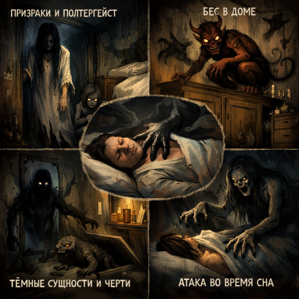 Если сущность просто живет в доме, она проявляет себя хаотично по отношению ко всем жильцам и гостям без разбора: у всех пропадают вещи, все слышат звуки, двери хлопают сами по себе независимо от эмоционального состояния человека. Если же сущность начинает «охоту» на конкретного человека, проявляя избирательность (например, нападает только на подростка или только на мать, игнорируя отца), и делает это преимущественно в фазах сна, с попытками проникновения в тело или сознание, — это уже выход за рамки простого «проживания». Так сущность показывает, что хочет подчинить. Для того чтобы временно подселиться во сне (астральное вселение), сущности не нужно получать полного согласия воли человека, достаточно проломить его энергетическую защиту в момент, когда она ослаблена сном, болезнью или стрессом. Это называется «инвазия». В отличие от постоянного подселения (одержимости), когда сущность контролирует поступки, речь и реакции человека в бодрствующем состоянии, при временном подселении во сне человек днем остается собой, но чувствует «похмелье»: апатию, потерю времени, необъяснимую агрессию к близким, изменение вкусовых привычек (тягу к сырому мясу или алкоголю), что говорит о том, что сущность оставляет после себя «информационный след» или энергетическую пробку в теле.