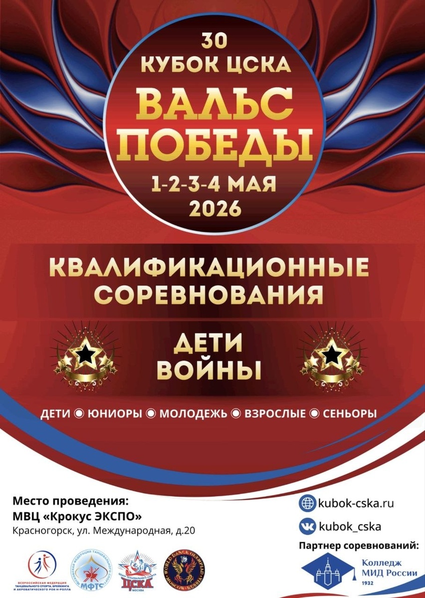 Открыта регистрация на 30-й Кубок ЦСКА «Вальс Победы», который состоится 1-2-3-4 мая❗️❗️❗️