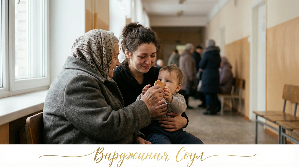Петя орал уже сорок минут. Не хныкал, не капризничал – орал. На всю очередь, на весь коридор поликлиники, на весь мой мозг. Ему было два года, температура тридцать восемь и пять, и ему было совершенно не важно, что нас шестнадцать человек в очереди и восемь из них пришли с самого утра. Я держала его на руках и тихо страдала. Был февраль. Я не ела с утра, потому что сначала некогда, потом забыла, потом уже не до того. В сумке лежал один мандарин и упаковка влажных салфеток. Очередь не двигалась. Педиатр принимала медленно, тщательно, хорошо – но медленно. В коридоре пахло хлоркой и детским потом. – Мамочка, мамочка, – бормотал Петя мне в ухо. Я не понимала, чего он хочет. Просто мамочку. Просто чтобы не болело. – Малыш, – сказала женщина рядом. Я посмотрела. Она сидела в крайнем кресле у окна, лет семидесяти, в сером пальто с вытертыми локтями и шерстяном платке. Смотрела на Петю спокойно, без раздражения, которое я видела в глазах остальных. – Возьмите, – она протянула открытую пачку п