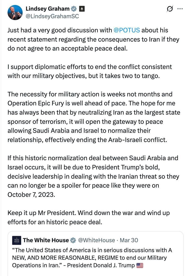 ‘WIND DOWN THE WAR AND WIND UP EFFORTS FOR AN HISTORIC PEACE DEAL’ — LINDSEY GRAHAM